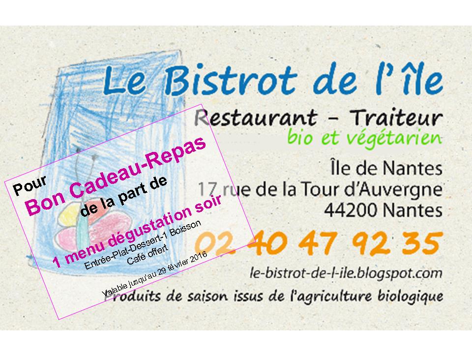 ou les commander par téléphone 02 40 47 92 35, ou par mail lebistrotdelile@free.fr, dans ce cas vos Bons-Cadeaux vous seront envoyés par mail après réception de votre paiement.